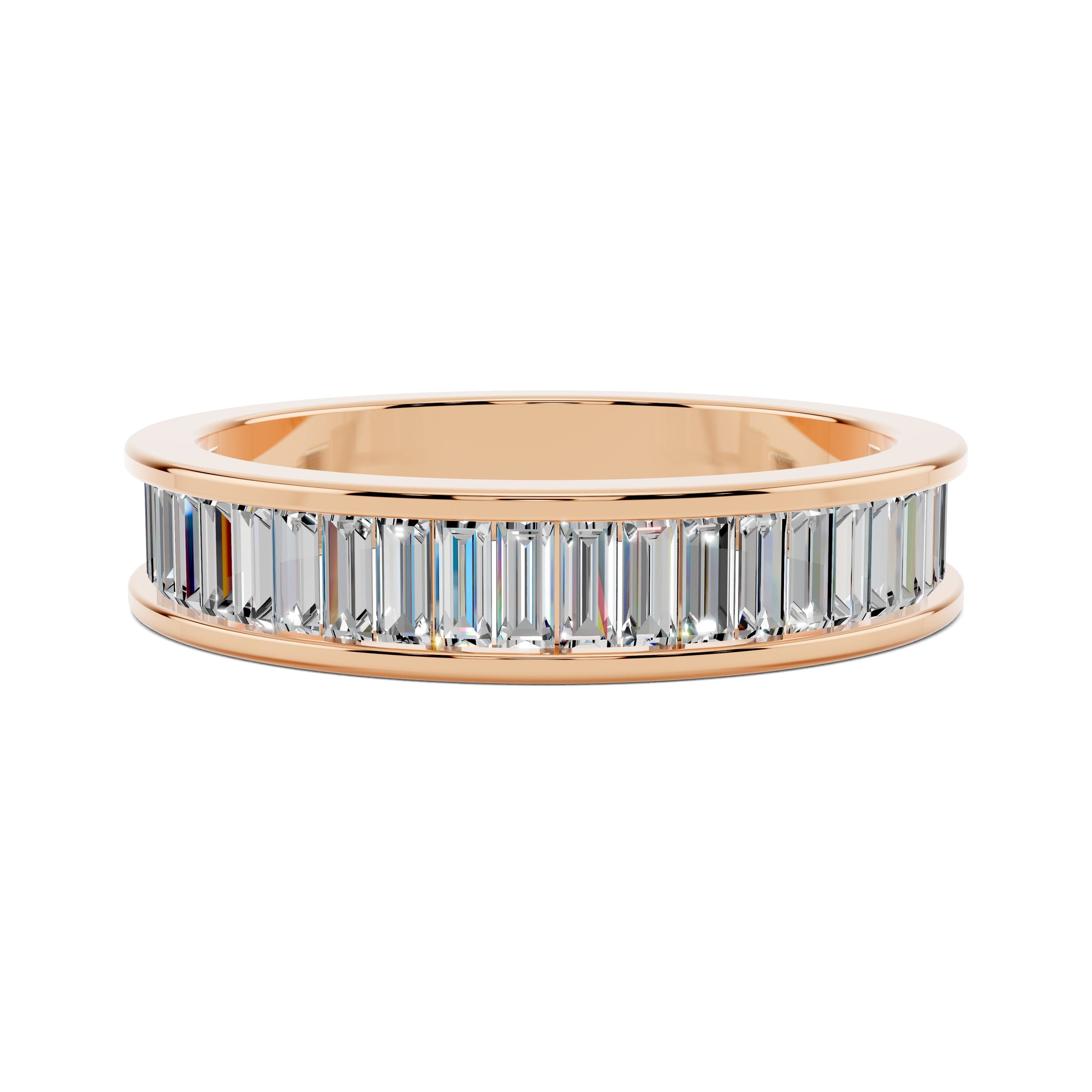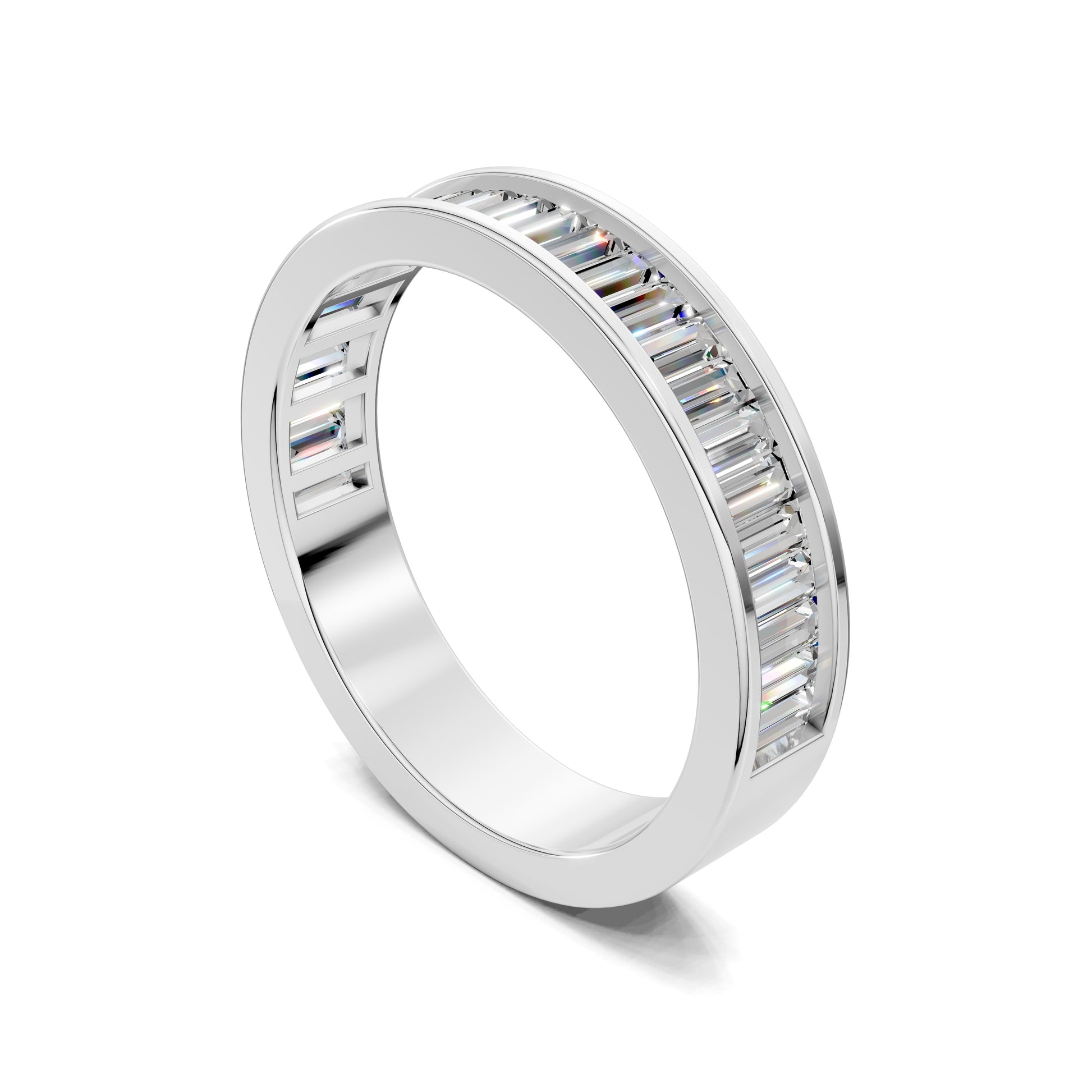 The linear beauty of baguette-cut diamonds gives this band a striking edge, a symbol of strength, clarity, and everlasting style.