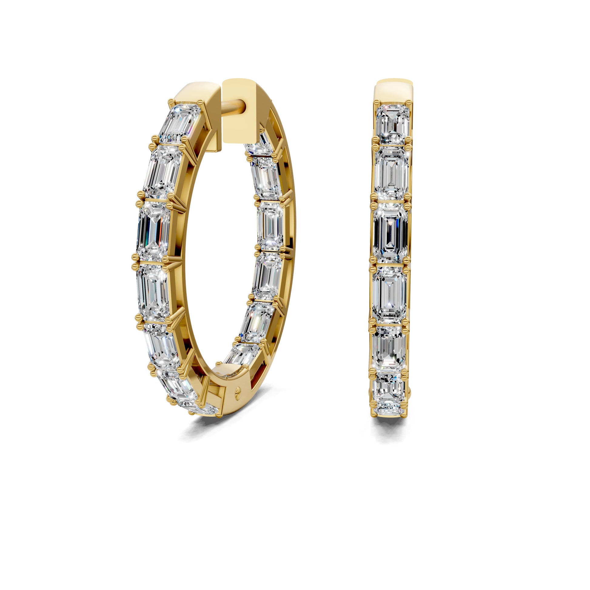 Elevate your style with these Baguette Diamond Hoops, designed to captivate with their sleek elegance and sparkling clarity. The finely cut baguette diamonds catch the light beautifully, adding a touch of sophistication to any outfit. Perfect for both everyday wear and special occasions, these hoops offer a timeless look that complements your unique grace and confidence. Experience luxury that effortlessly enhances your natural beauty.