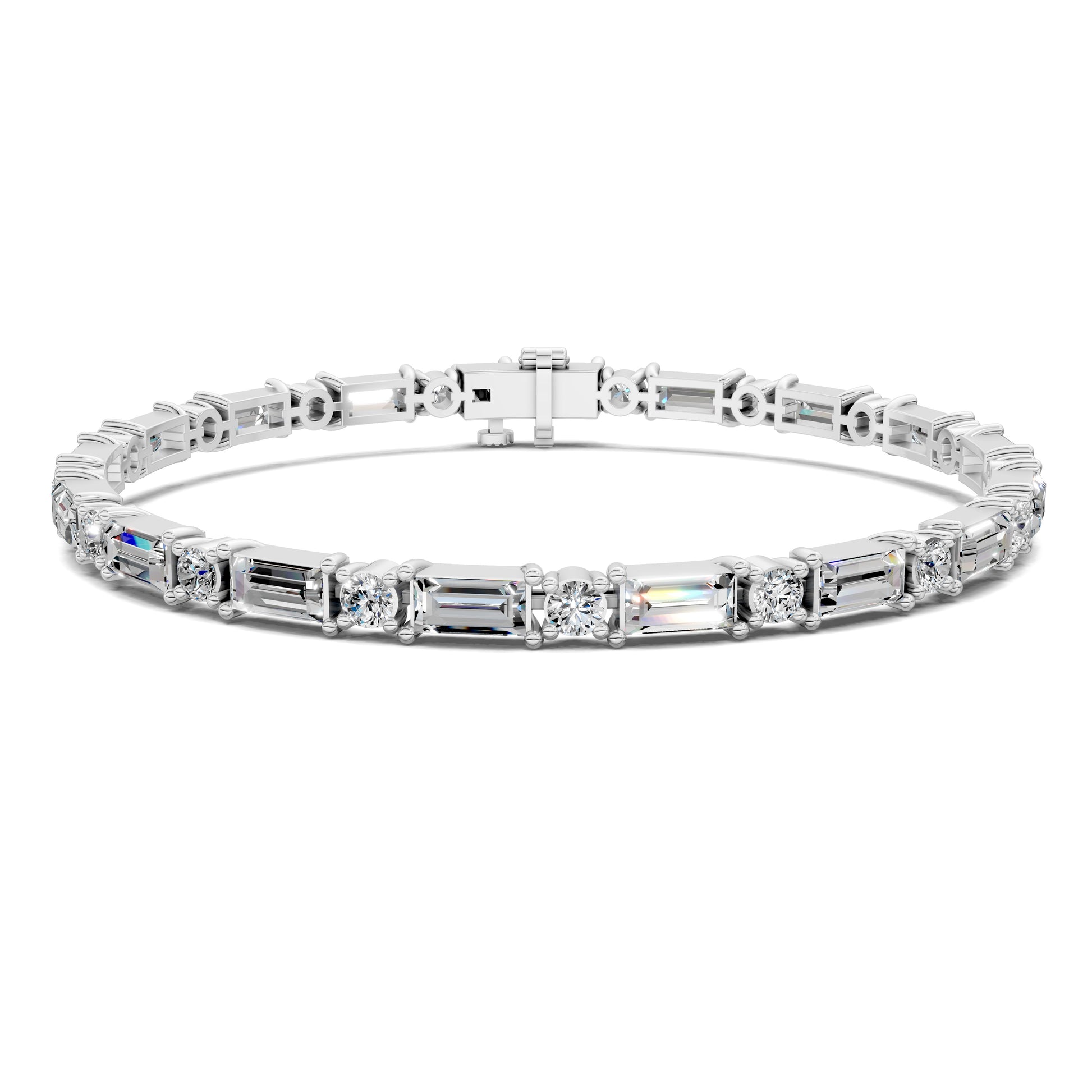 Crafted with alternating baguette and round diamonds, this bracelet brings texture and light to a timeless silhouette. Designed for versatility, it balances contemporary edge with classic sophistication.