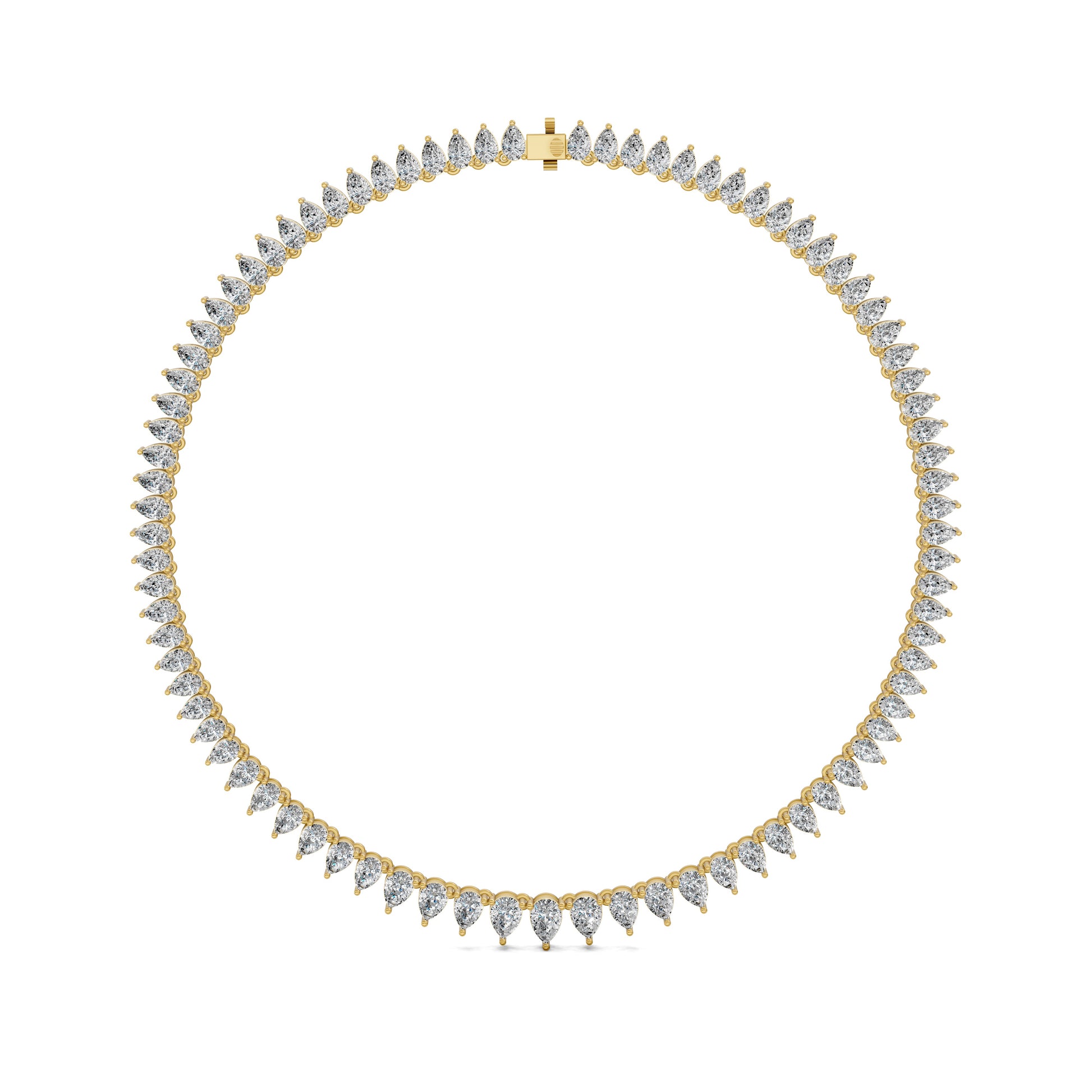 Crafted with pear-cut diamonds arranged in a flawless line, this necklace balances grace with presence. Its fluid design catches light from every angle, making it an heirloom-worthy piece of modern sophistication.