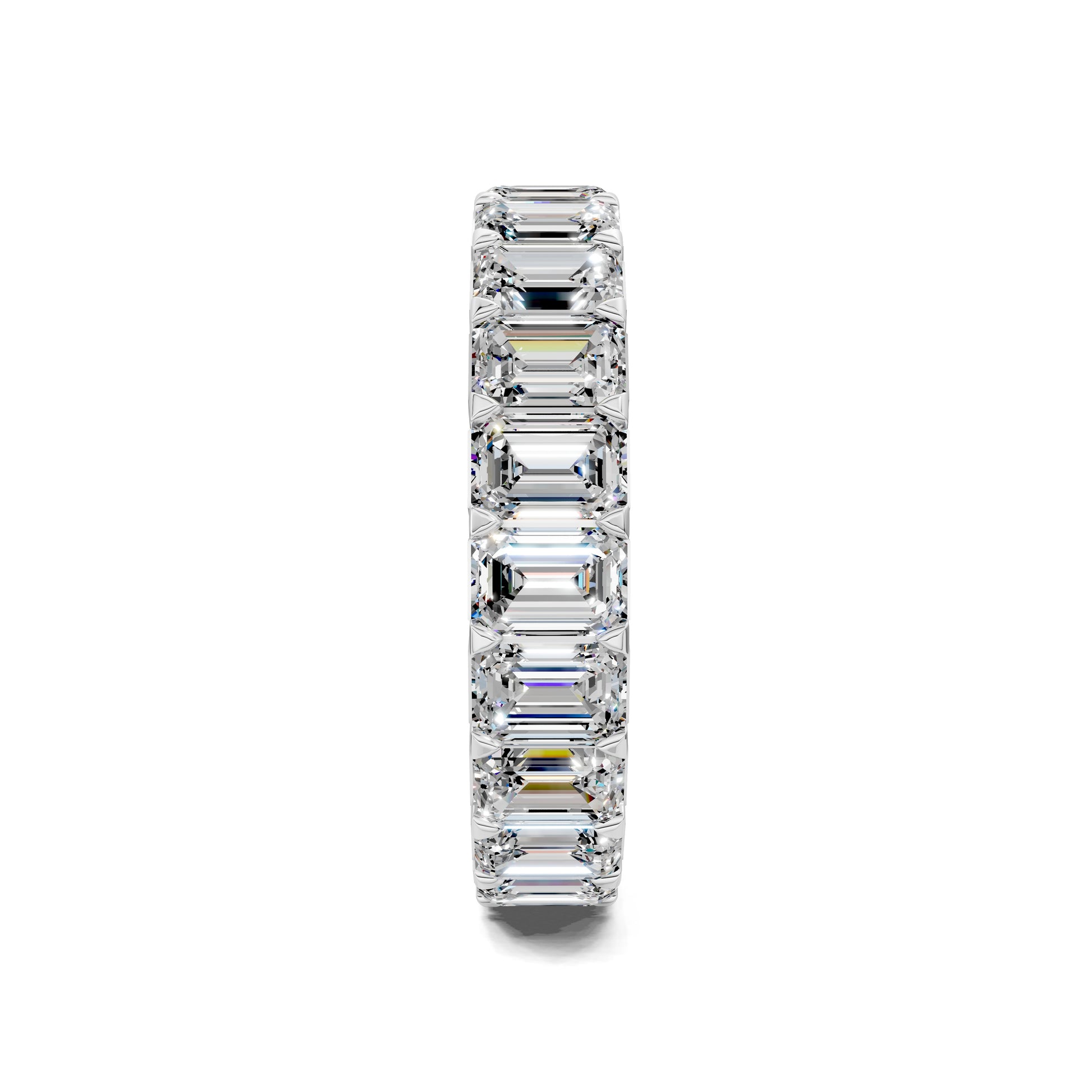 Diamond eternity band alternating emerald-cut and round brilliant diamonds. A luxurious wedding or anniversary band with a bold, unique design.
