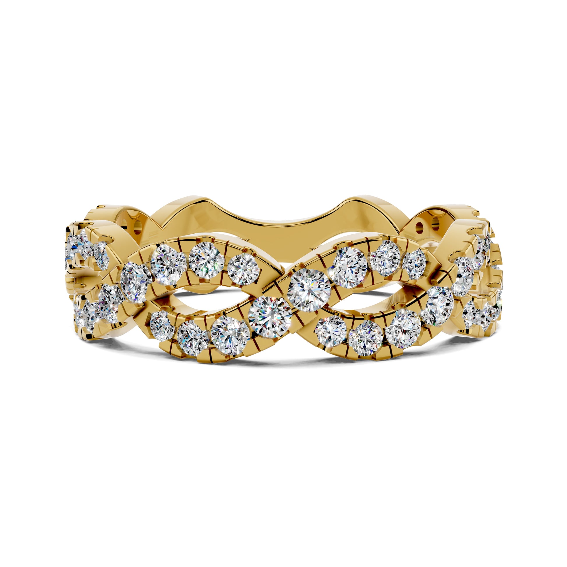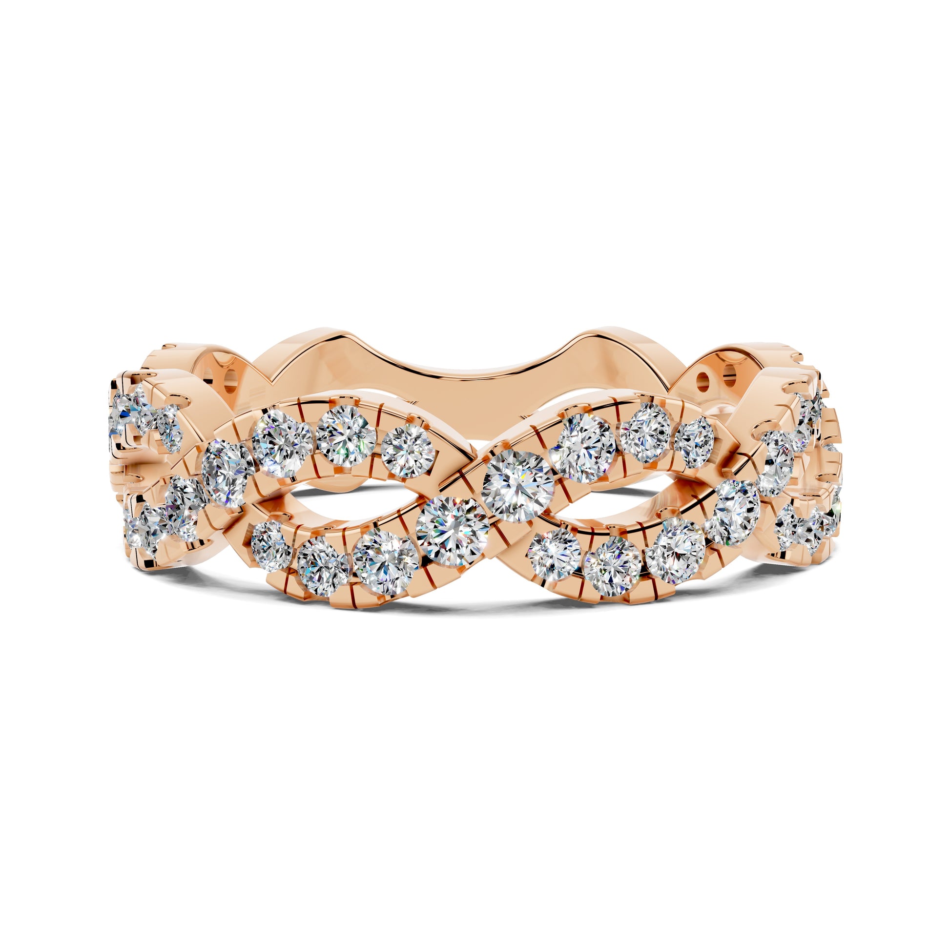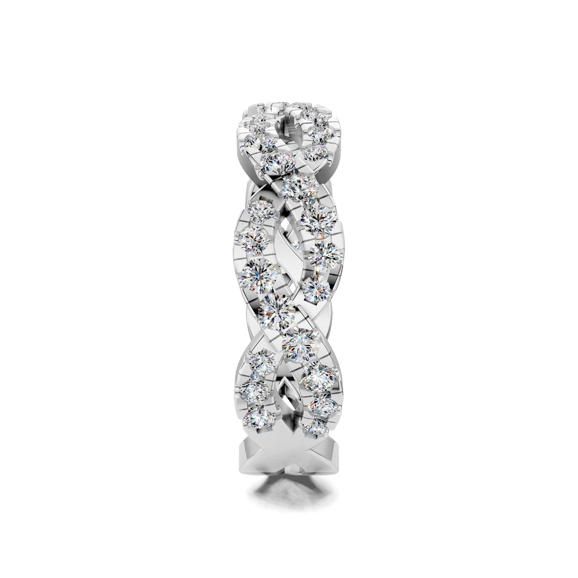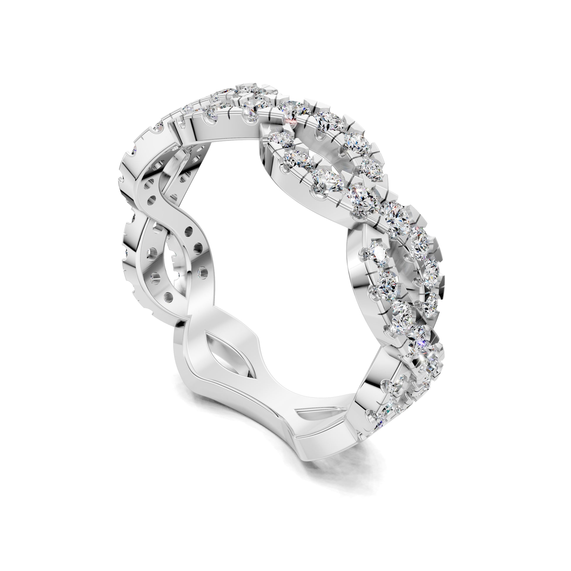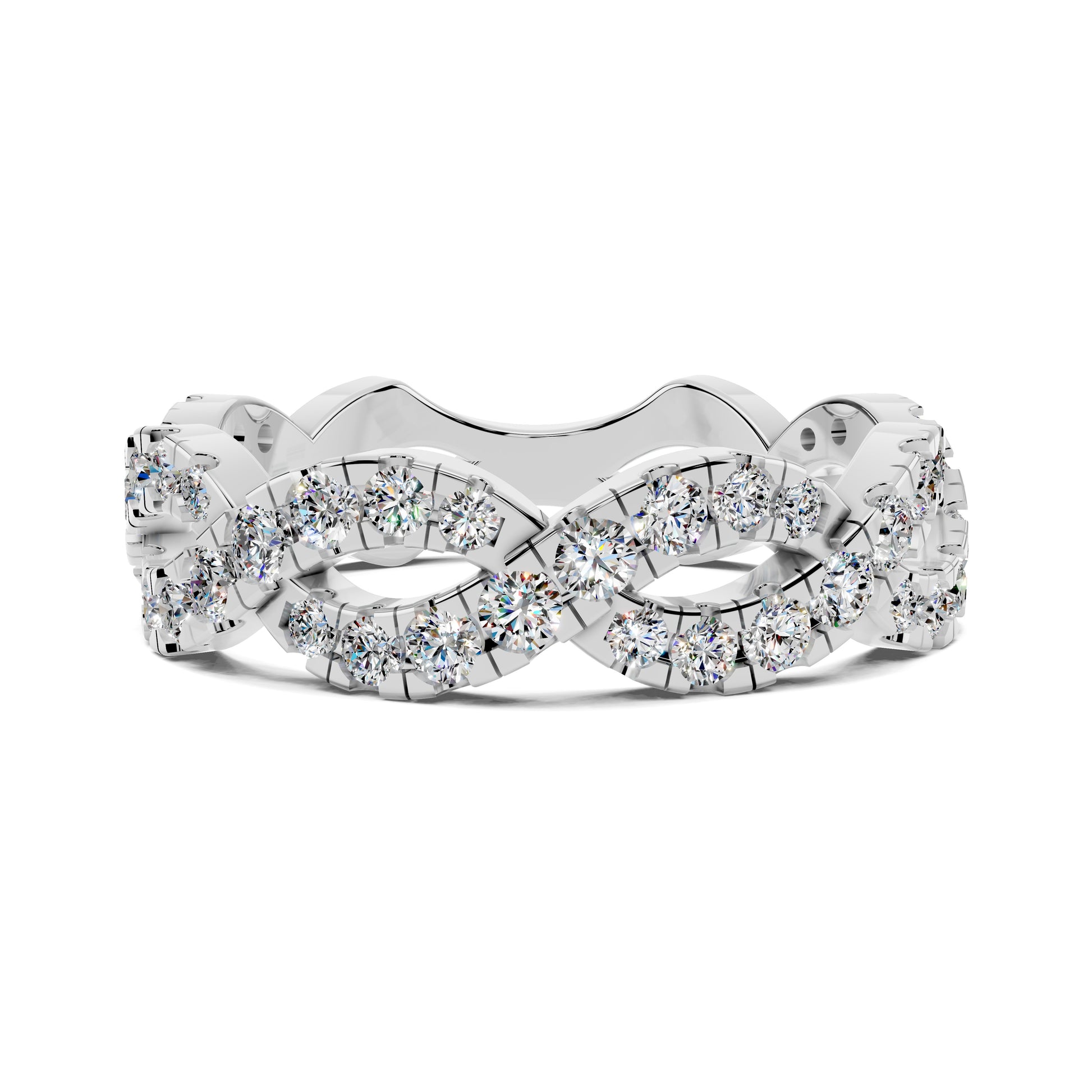 A graceful infinity-inspired band with interwoven rows of round diamonds, symbolizing endless love and timeless elegance.