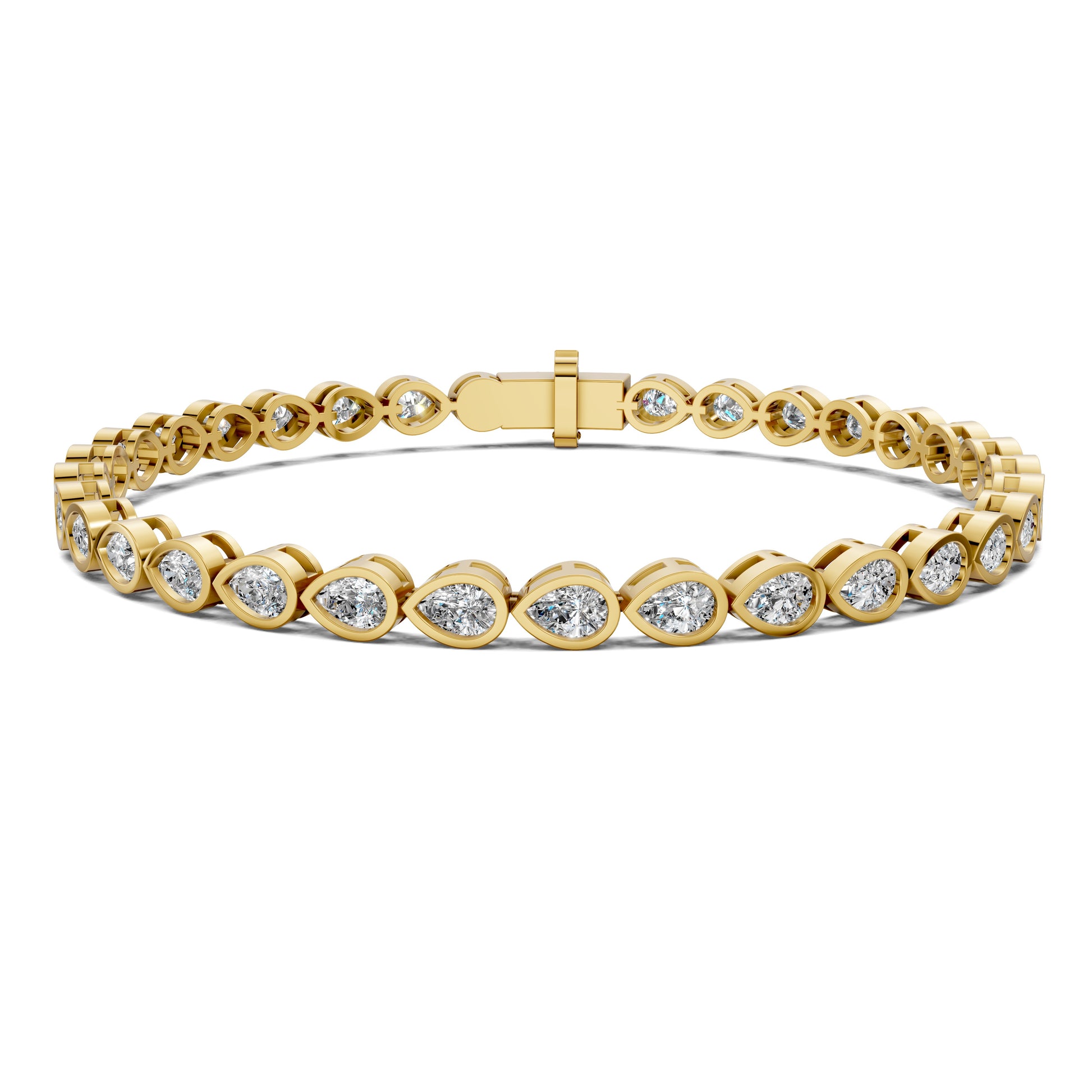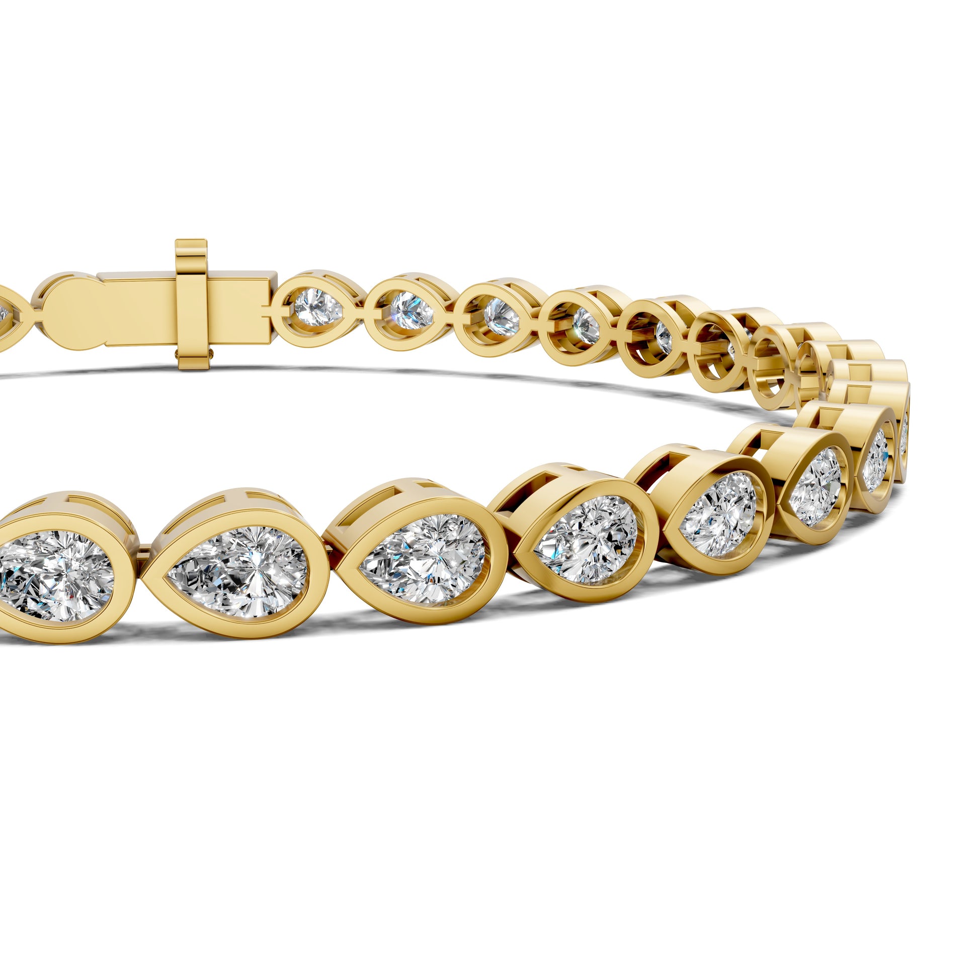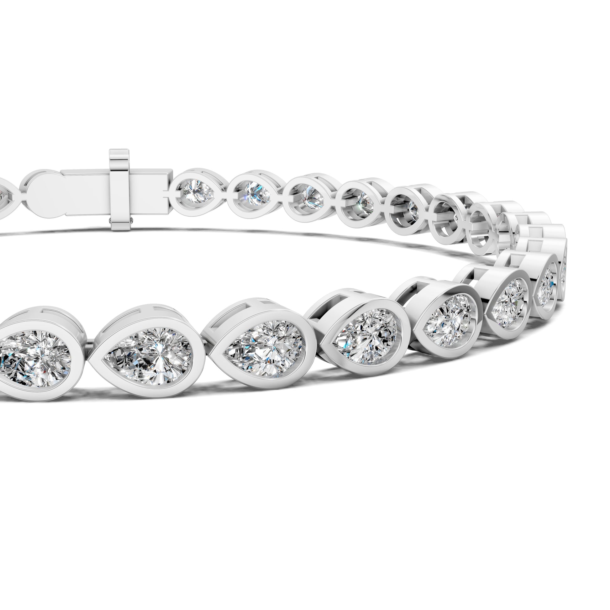 Crafted with pear-shaped diamonds in sleek bezel settings, this bracelet offers understated luxury. The continuous flow of teardrop brilliance adds elegance to any occasion, from everyday moments to evening celebrations.