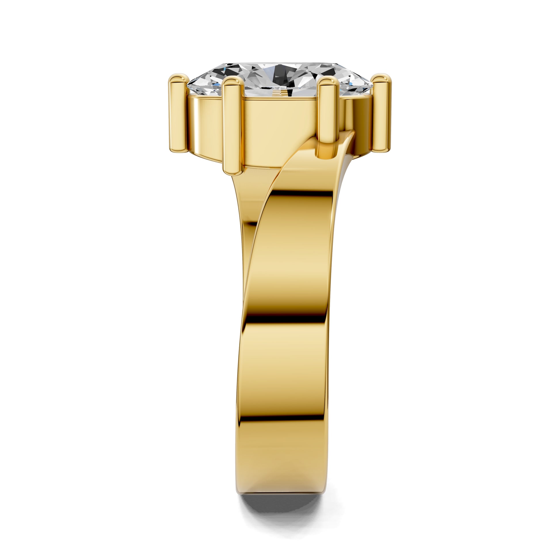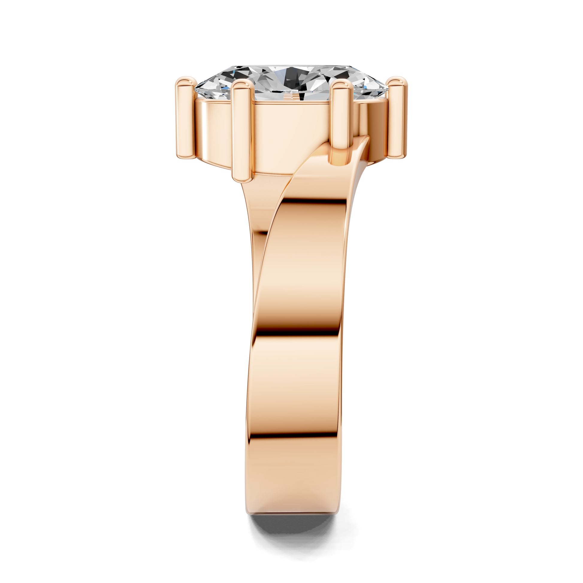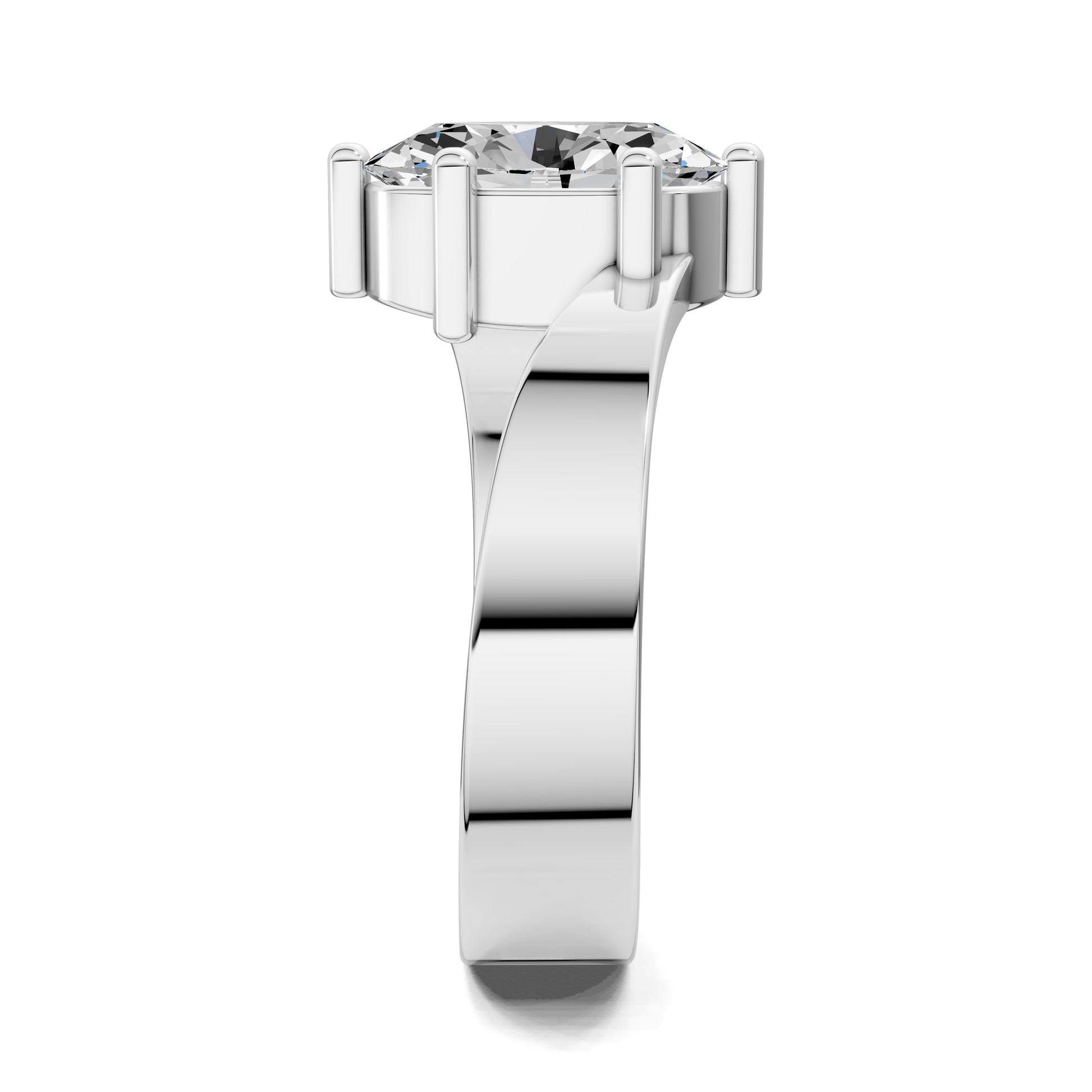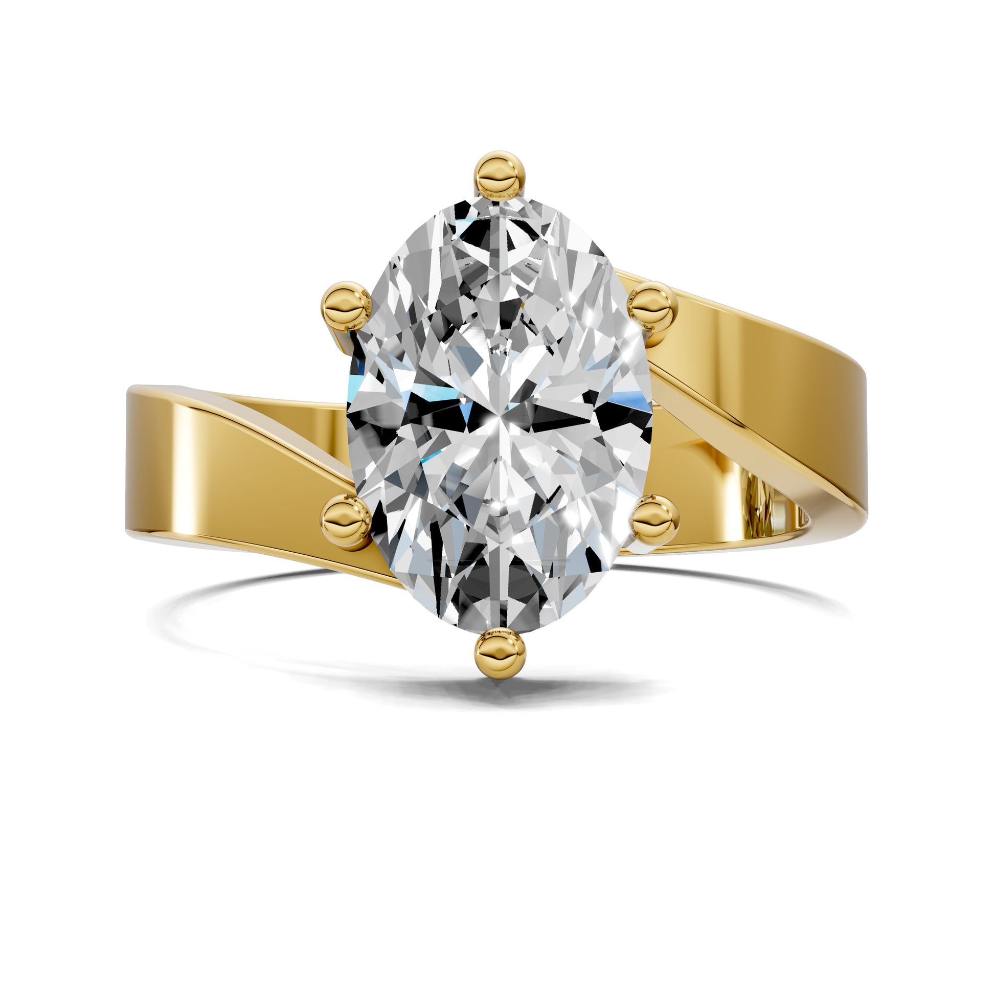 An oval cut diamond shines at the center, embraced by a sculpted bypass band that flows with contemporary elegance. A refined design that highlights movement and light.