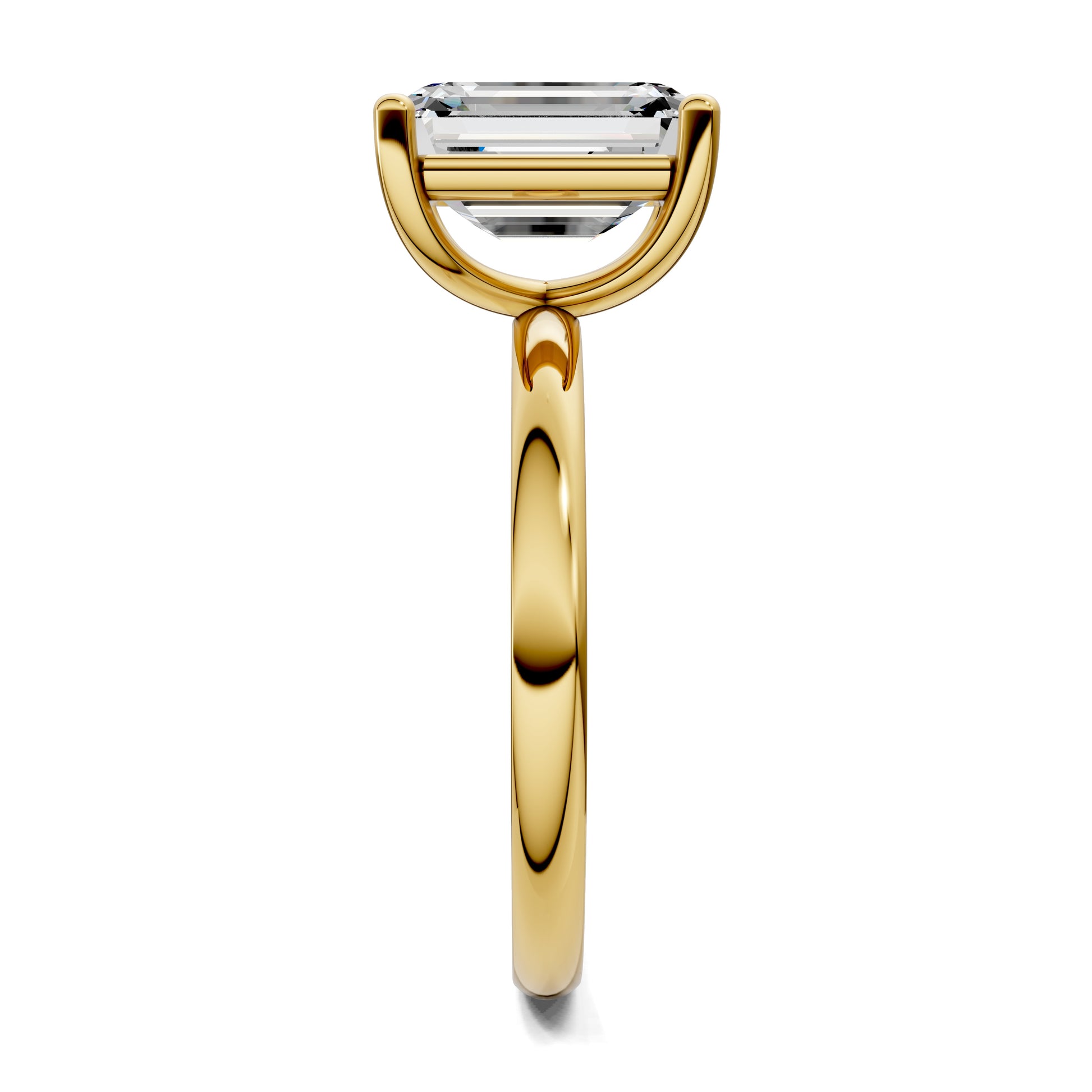 The emerald cut diamond, with its hall-of-mirrors effect and sleek lines, embodies refined sophistication. A solitaire design that highlights clarity and elegance.